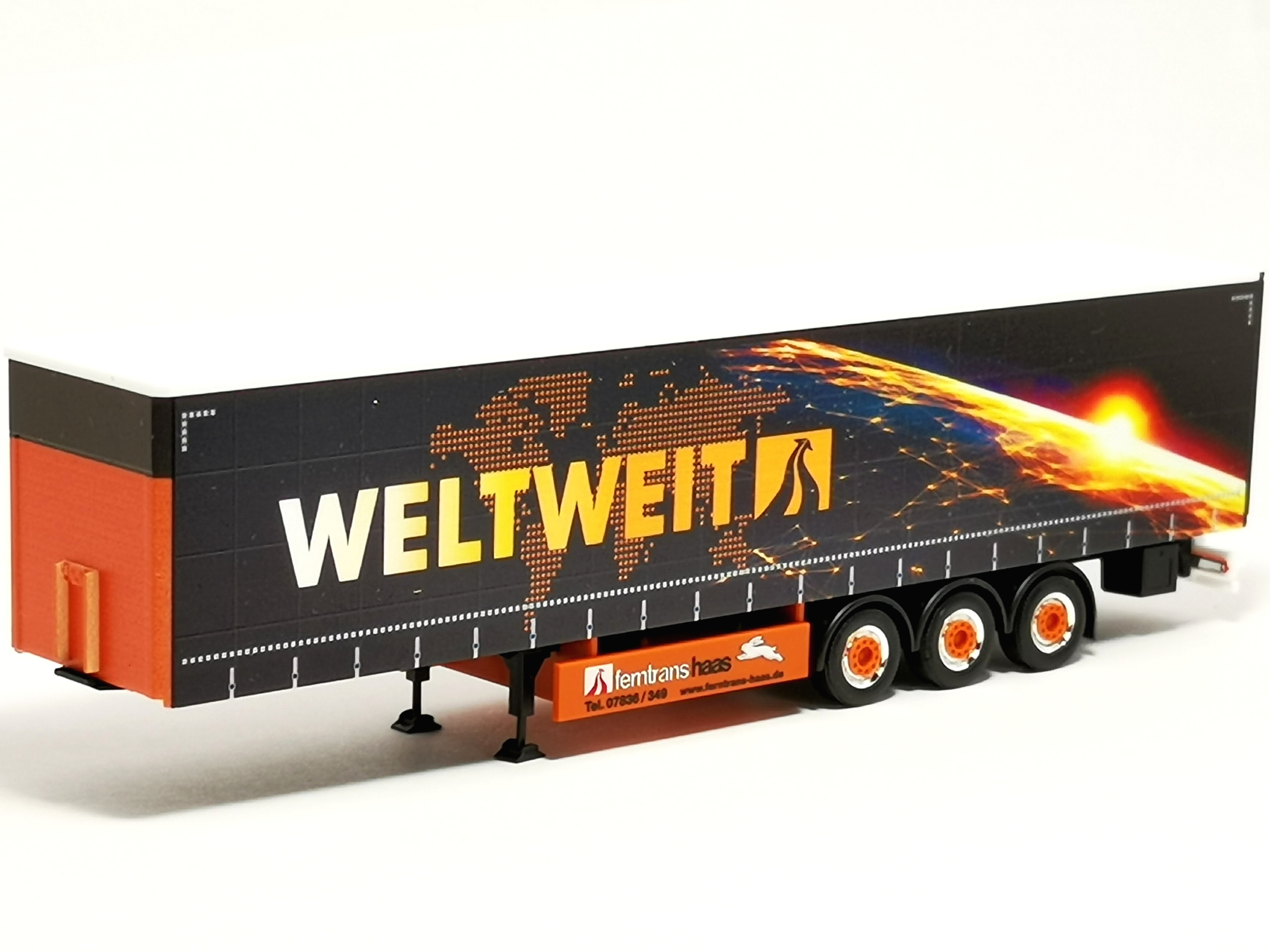 Gardinenplanen-Auflieger "Ferntrans Haas/weltweit" schwarz Herpa