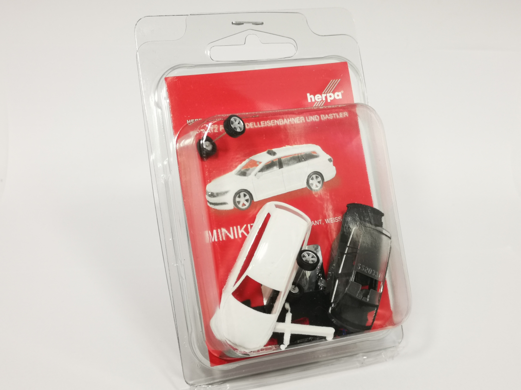 MiniKits sind original Herpa Modelle als Bausätze für Modelleisenbahner und Sammler. MiniKits lassen sich aufgrund der Herpa Schnappbauweise mit wenigen Handgriffen ohne Kleber zusammenbauen (Montageanleitung liegt bei). So kann die Modellanlage preiswert mit Autos bestückt oder ein Autotransportzug günstig mit PKW beladen werden. Und Airbrusher können vor dem Zusammenbau die Karosserie in der eigenen Wunschfarbe lackieren.